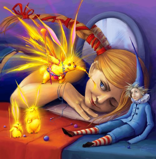 Шуршарик с пояском запрыгнул на кровать и повелел девочке к нему нагнуться. Затем он из-за пояса вытащил золочёную кисточку и провёл ею по Машиному лицу, произнося неизвестные девочке слова.